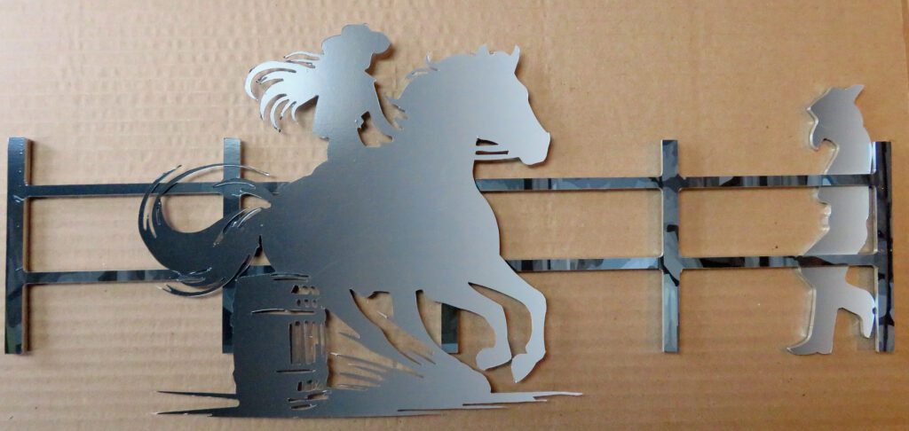 Turning the Corner (metal 3-D) by AIC artist There’s something about barrel racing that stirs something deep inside me. The speed, the precision, the raw energy—it’s more than a competition; it’s a rush you can feel in your chest. I used to love watching rodeos live, completely captivated as rider and horse moved as one. The level of skill is incredible, but what truly stays with me is the connection—the unspoken trust between them. It’s powerful, and honestly, it’s the kind of bond I long for in my own relationships.
