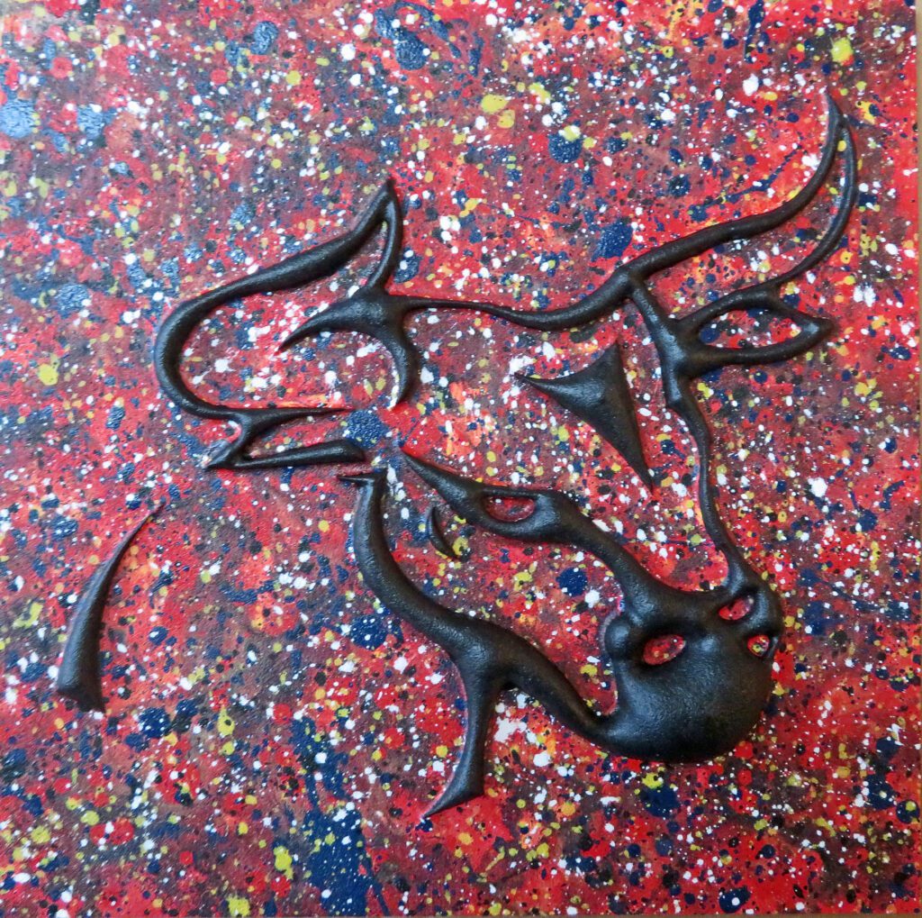 I’ve always been drawn to the raw energy of Jackson Pollock—the way his work feels alive, unpredictable, almost untamed. I wanted to capture a piece of that spirit. So I let the colors fly. The background became a layered, chaotic rhythm of splatters—my own attempt to echo that sense of motion and freedom, even from within confinement.